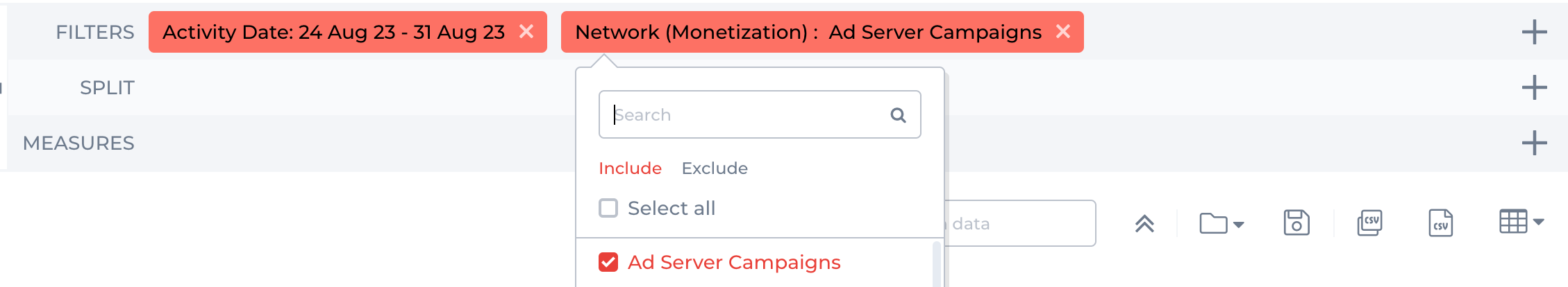 You can see your campaigns statistics on the Dashboard by selecting "Ad Server Campaigns" in Filters -> Network (Monetization) :