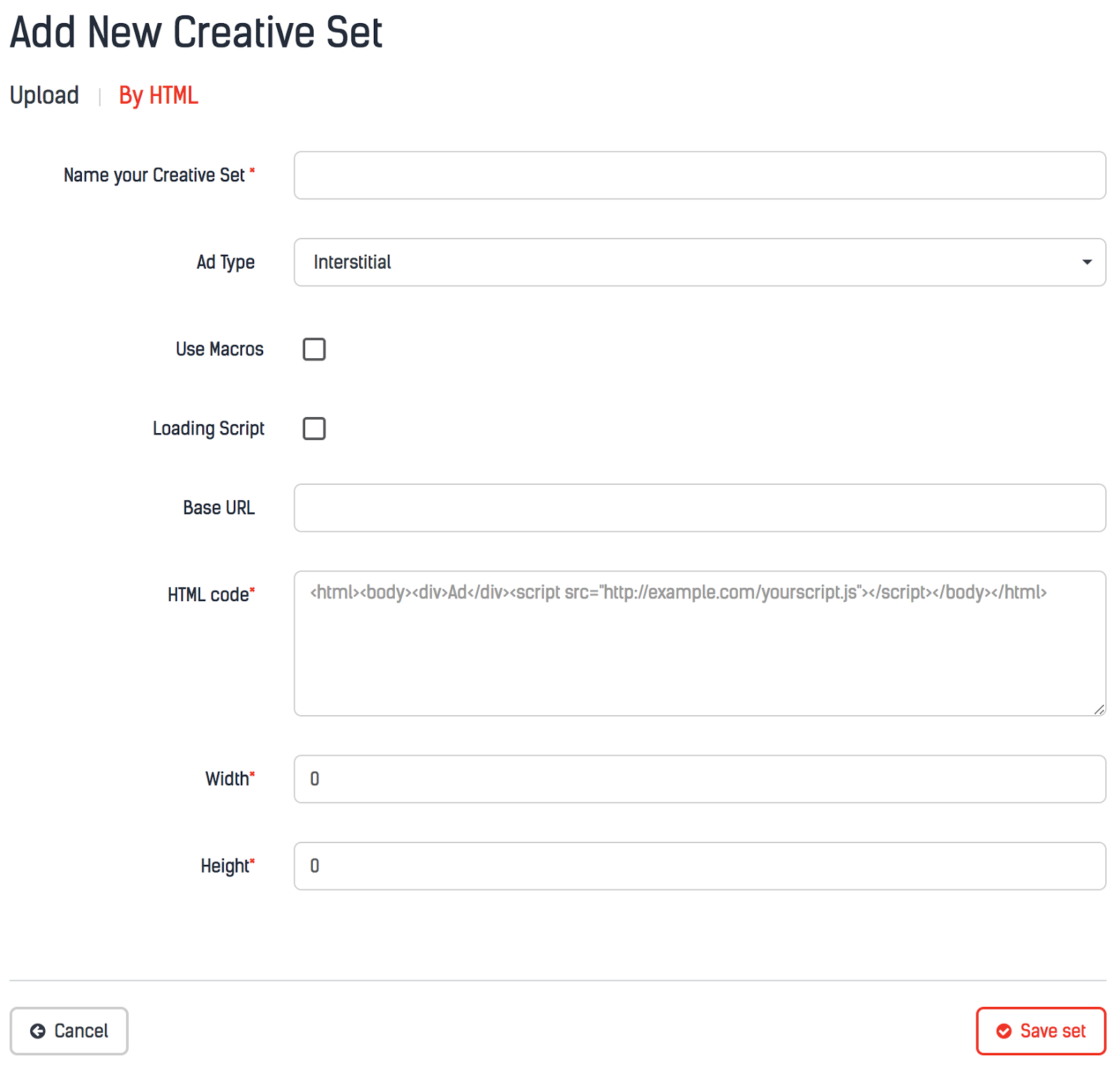 This is relevant to advanced users who want to launch direct campaigns for an advertiser who has a "JS tag", or just a simple HTML code that loads interstitials or banners with some JS scripts.