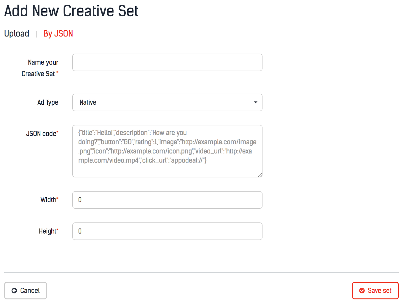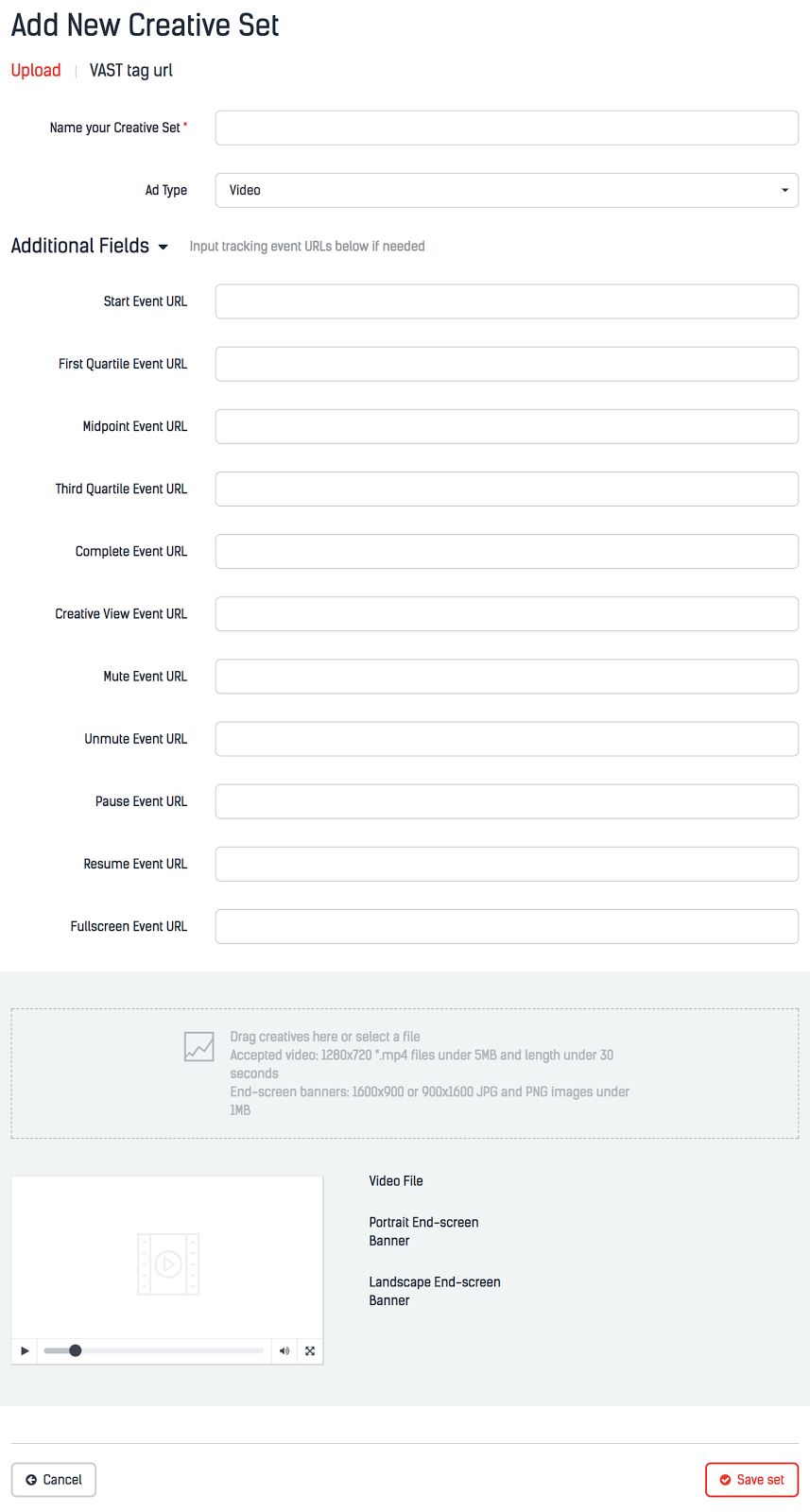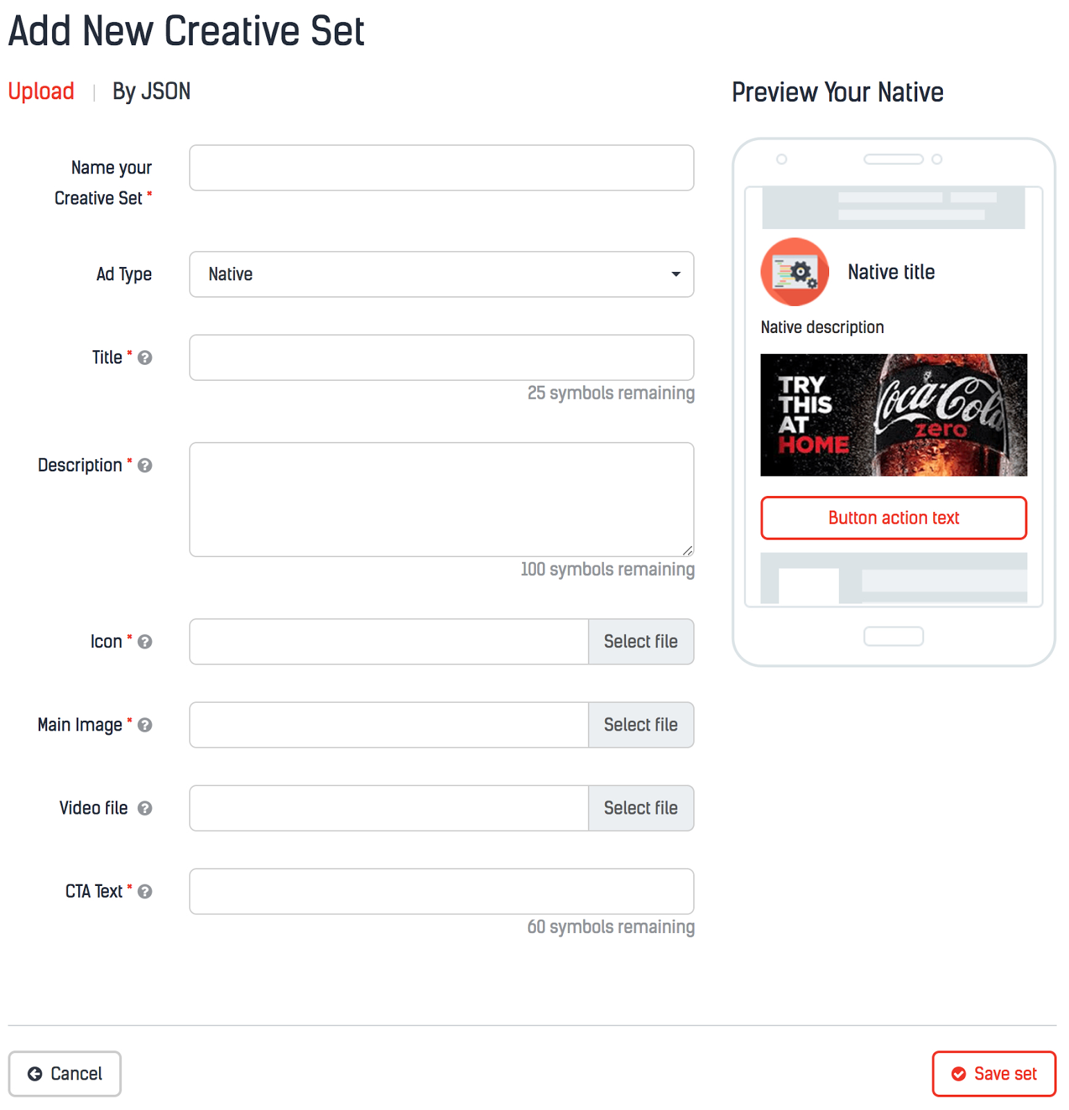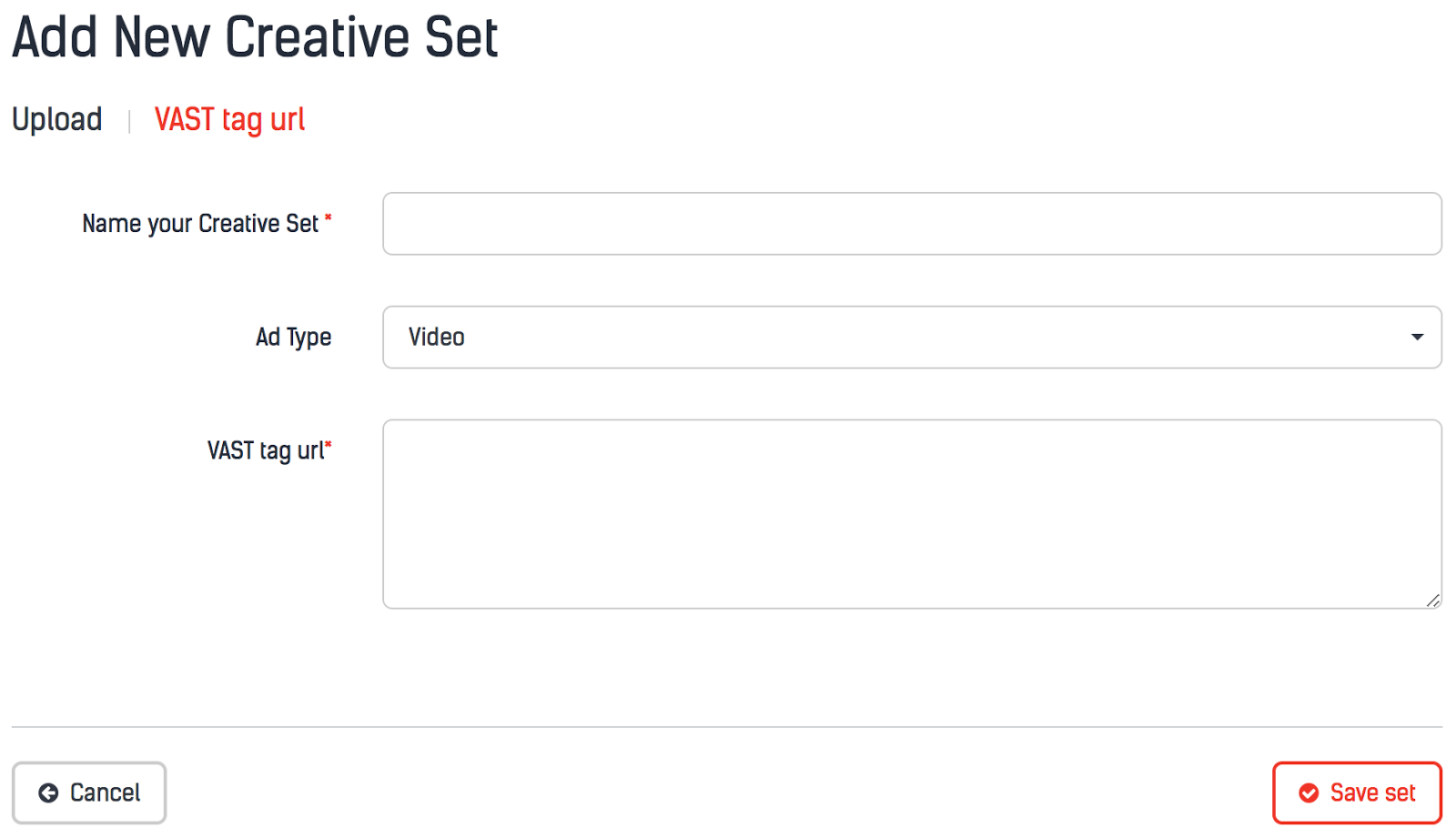 - Creative Set (you have to choose an existing creative set or create a new one)