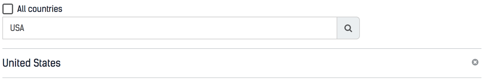When you input the country’s name into "Include places" input (e.g. "USA") and click on the country from the dropdown list, you will see the country as a selected GEO location: