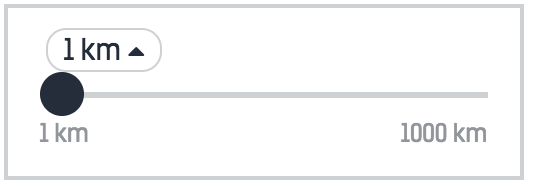 By default, selected street address or a certain point on the map has a radius of only 1 km. You can change it by clicking on the "1 km" label and choose another value: