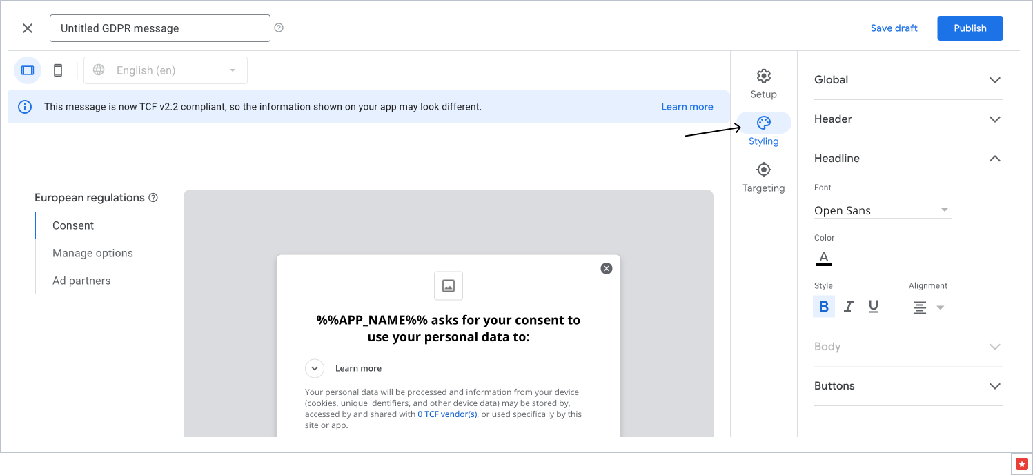 - Go to the Styling tab and make appropriate changes to your message.