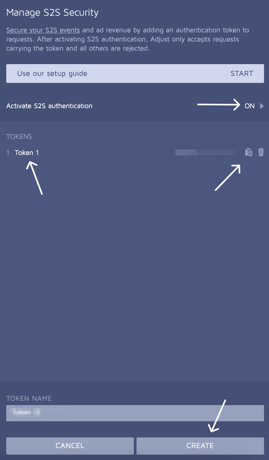 For Attribution Platform choose Adjust, Adjust S2S Security Token (can be copied from Adjust App Settings → S2S Security from the previous step ) and Adjust App Token is in your app settings, choose Production for Adjust Environment.
