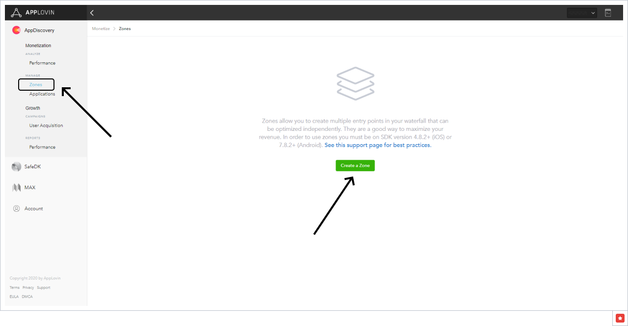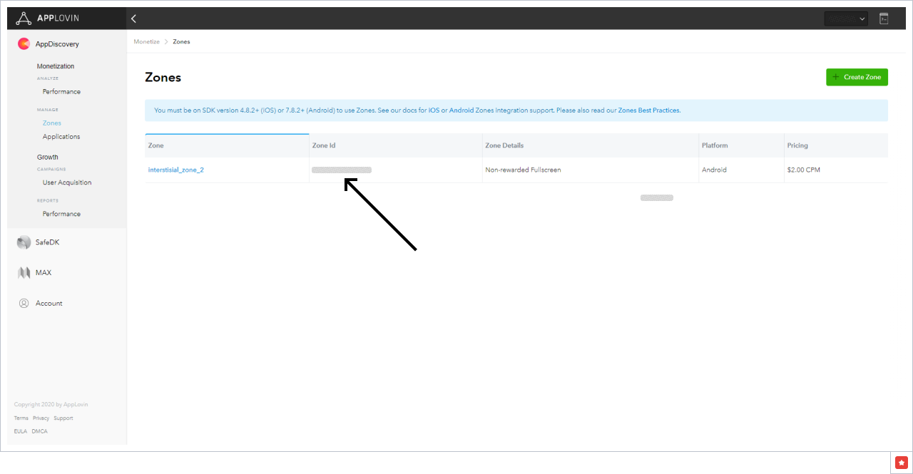 Zone ID - Zone ID from AppLovin account. Navigate to AppLovin account → AppDiscovery → Zones.