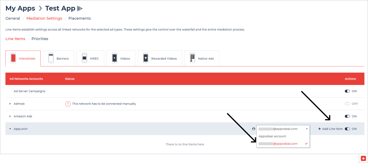 - You need to full fill the requirements, which you can find in your App Settings -> Mediation Settings -> Line Items in your Appodeal account.