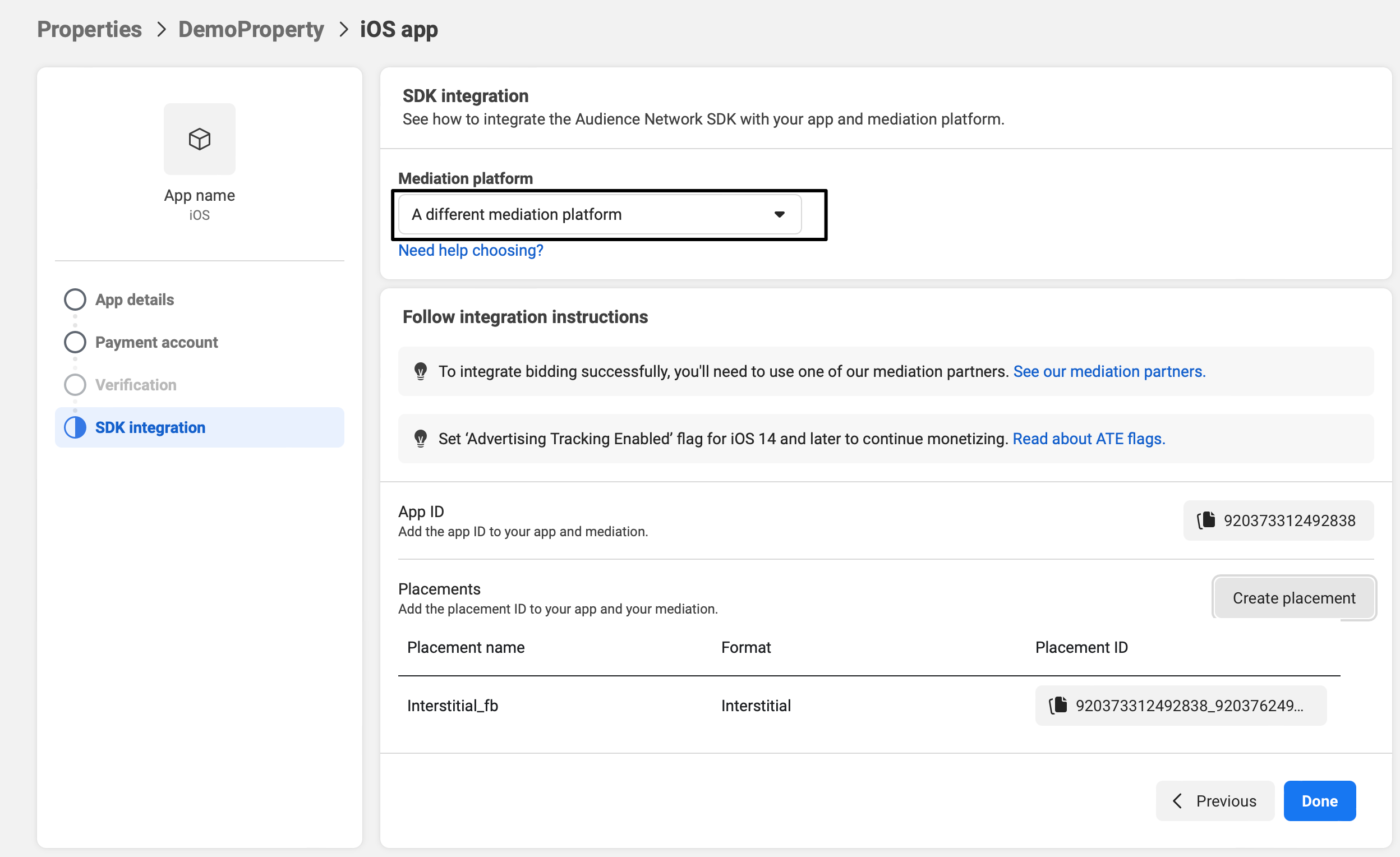 If the first part of the placement ID does not match the app ID, Meta Audience Network won't work.