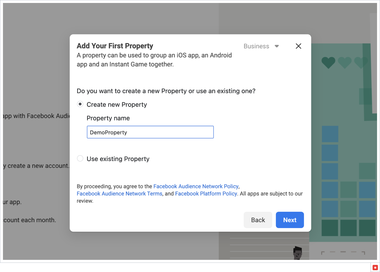 Once the Meta app is created, you will need to connect it, if not previously connected, with Meta Audience Network.