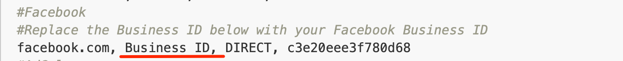Copy your Meta Business Manager ID and replace the “Business ID” with it in your app-ads.txt file.