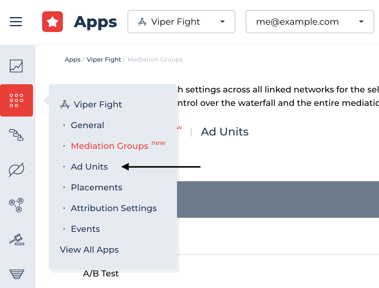 Choose the app you want to manage Ad Units for