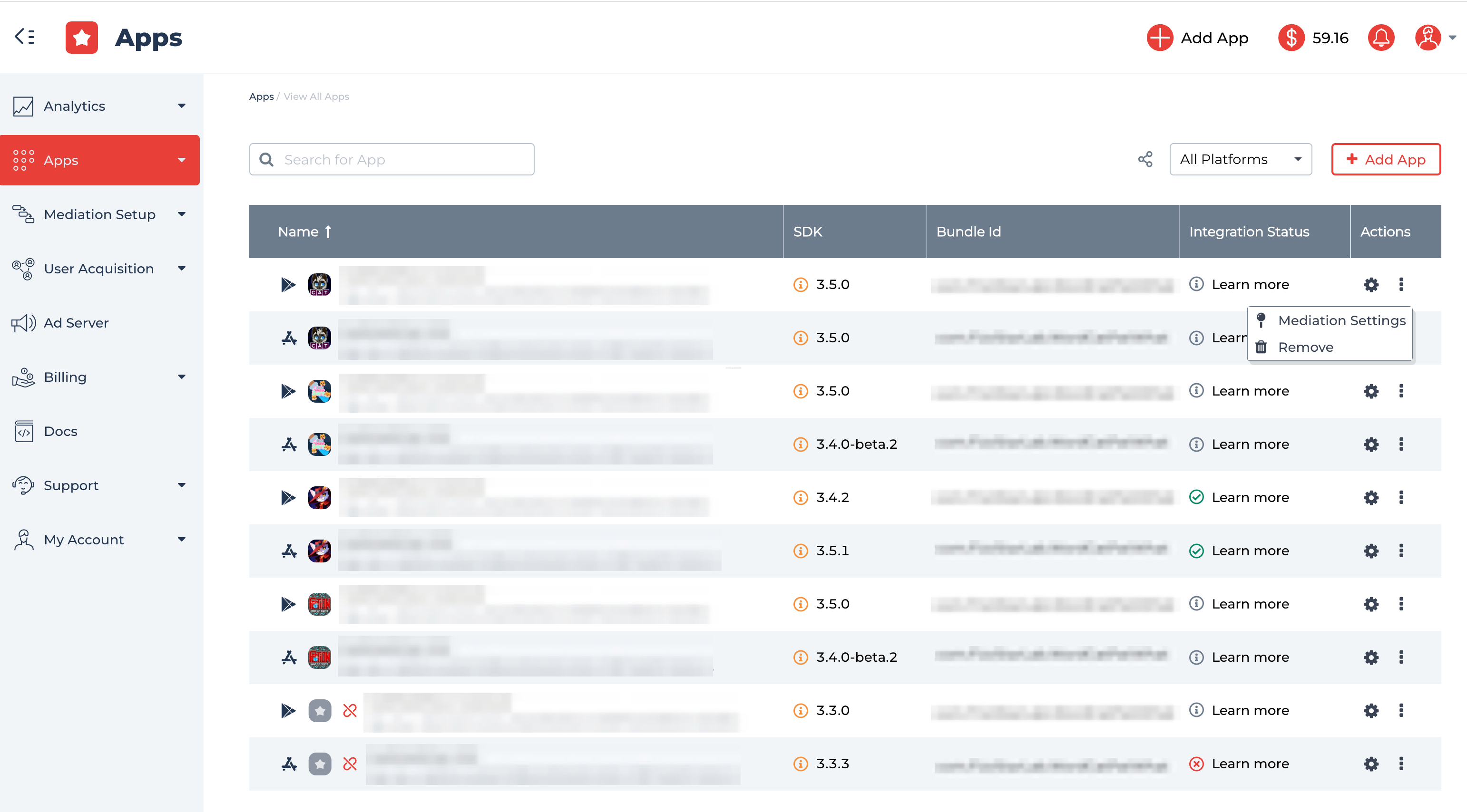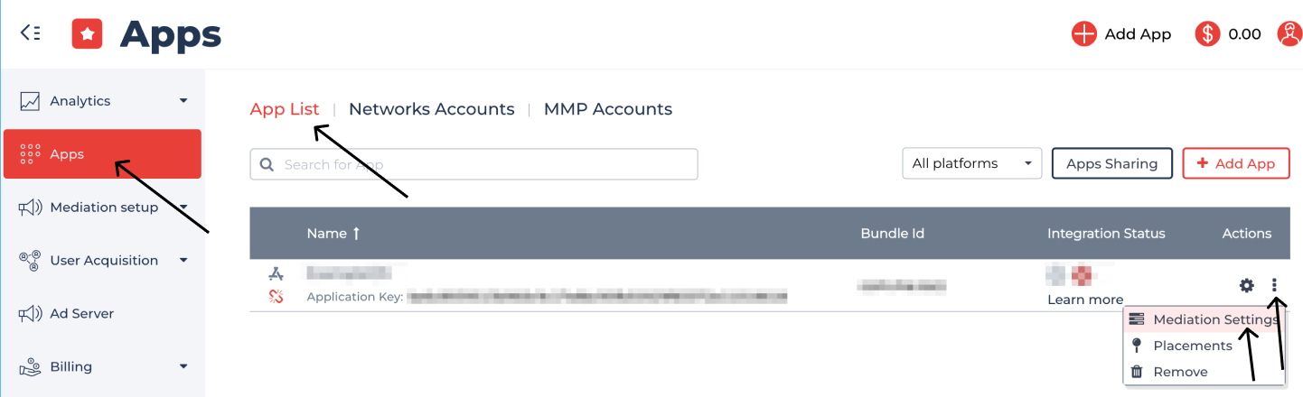 Select the Mediation Settings tab. For your convenience, we divided Ad Units by the ad types.