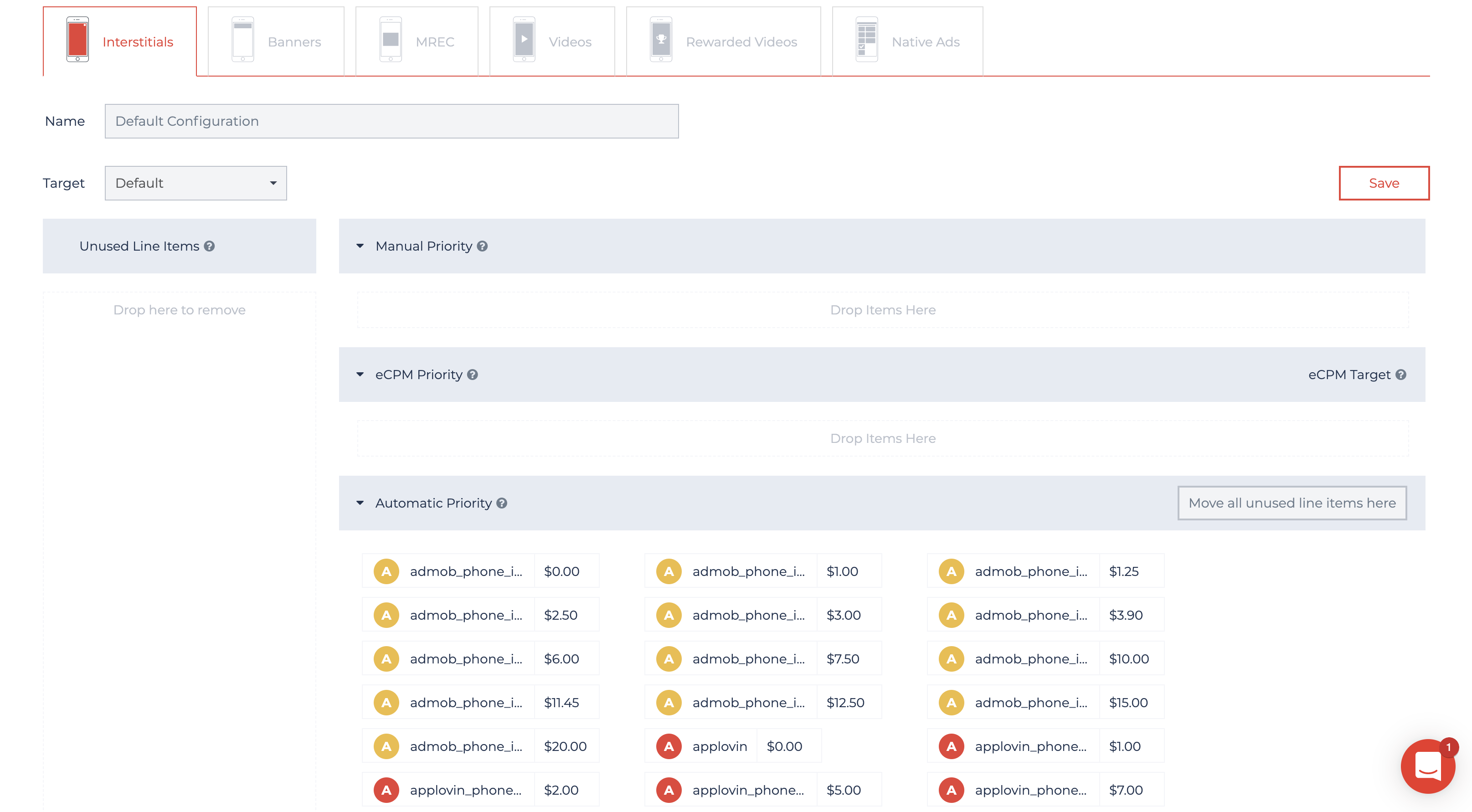 Перейдите в Application settings → Mediation Settings → Priorities, и выберите тип рекламы.
