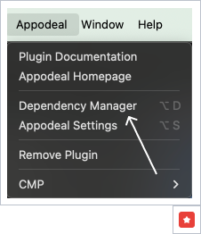 Open the Appodeal tab at the top menu bar of Unity Editor and select Dependency Manager.