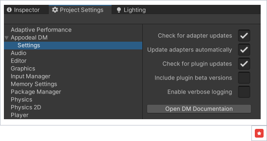 Check for adapter updates- when enabled, it checks once per session (from opening to closing the Unity Editor) if updates are available for the currently installed adapters.