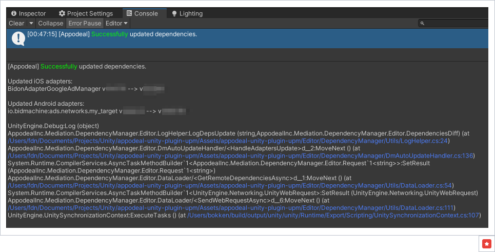 Check for plugin updates- when enabled, it checks once per session (from opening to closing the Unity Editor) if updates are available for the currently installed Appodeal Unity Plugin.