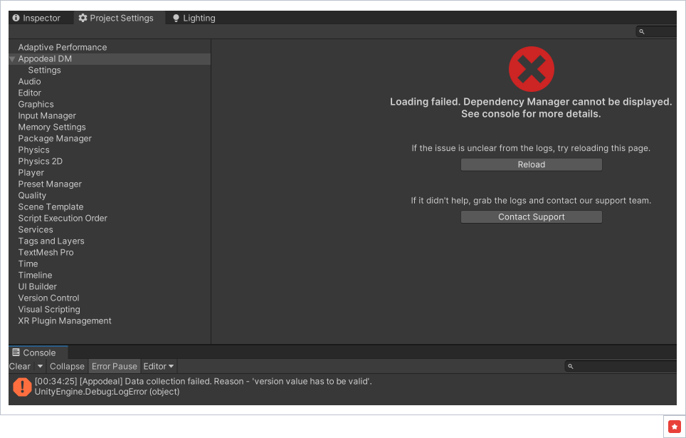 In case it is not possible to display Appodeal DM at the moment you will get the error shown below.