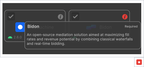 This section displays the available mediations inside Appodeal SDK. The versions for each platform are displayed at the bottom of each mediation.